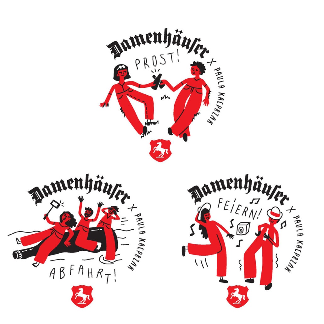 Solange der Vorrat reicht, erhältst Du zu jedem Shirt 3 Sticker mit Damenhäuser Illustrationen dazu – ideal für Laptop, Trinkflasche und Board.